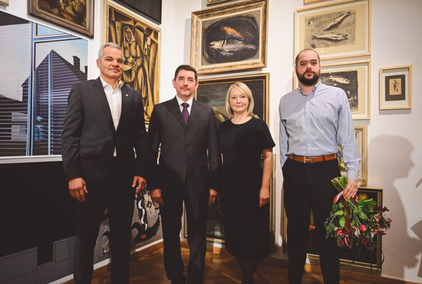 Župan Mestne občine Maribor Saša Arsenovič, soprog predsednice republike dr. Aleš Musar, direktorica Umetnostne galerije Maribor Simona Vidmar Čelik in David Tavčar.