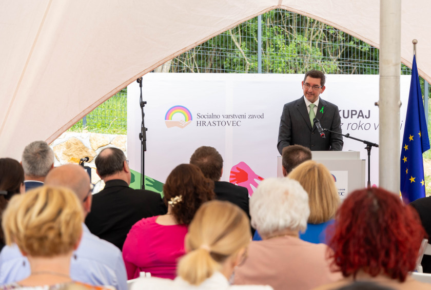 Dr. Musar je zbrane nagovoril in ob tem izpostavil nekaj pojmov, ki po njegovem mnenju označujejo današnji dogodek v Lenartu. Kot prvega je izpostavil deinstitucionalizacijo, ki jo Zavod Hrastovec udejanja že več kot 20 let in deluje že v osmih občinah in na trinajstih lokacijah. "Z novo enoto v Lenartu se vsi skupaj bližamo k temu, da stanovalkam in stanovalcem Hrastovca ne zagotavljamo le bivanja v ustanovi, ampak jim dajemo dom," je poudaril dr. Musar. Kot drugo besedo današnjega dne je označil prostovoljstvo in njegovo plemenito vlogo. "Vsak, ki namenja svoj čas tistim, ki potrebujejo našo pozornost, opravlja neprecenljivo: tisto, česar ne more zagotoviti država, zagotavlja pa čuteča družba. Skrb za sočloveka," je dejal.