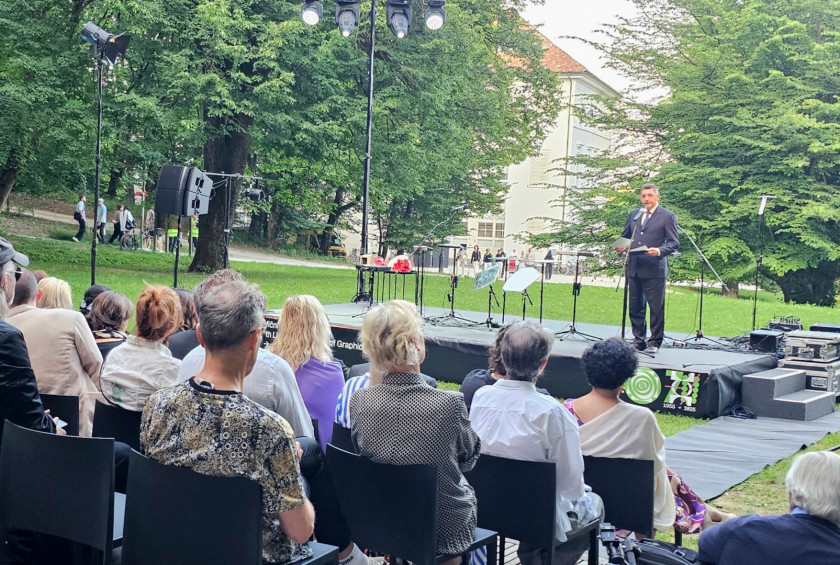 V Plečnikovem avditoriju je potekalo slovesno odprtje 36. Grafičnega bienala Ljubljana, enega najstarejših in najuglednejših mednarodnih dogodkov s področja grafične umetnosti na svetu. Častno pokroviteljstvo nad letošnjim bienalom je prevzela predsednica Republike Slovenije dr. Nataša Pirc Musar, zbrane pa je v njenem imenu nagovoril soprog predsednice, dr. Aleš Musar.