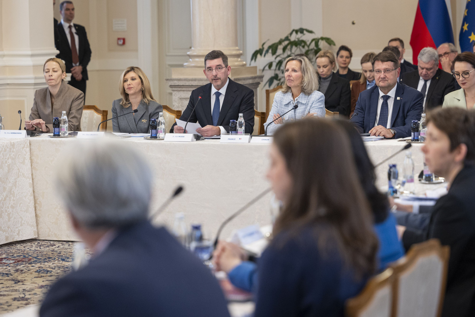 Soprog predsednice republike dr. Aleš Musar in prva dama Ukrajine Olena Zelenska sta sodelovala na slovesni seji Svetovalnega odbora ITF Ustanove za človekovo varnost. Seja je potekala v predsedniški palači, kjer je navzoče nagovorila tudi predsednica Republike Slovenije Nataša Pirc Musar.